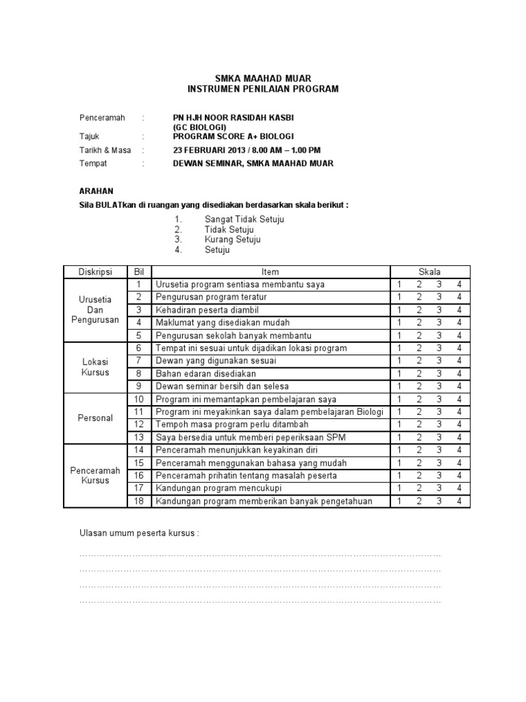 Doc Contoh Borang Penilaian Keberkesanan Latihan Dky Jerry Academia Edu
