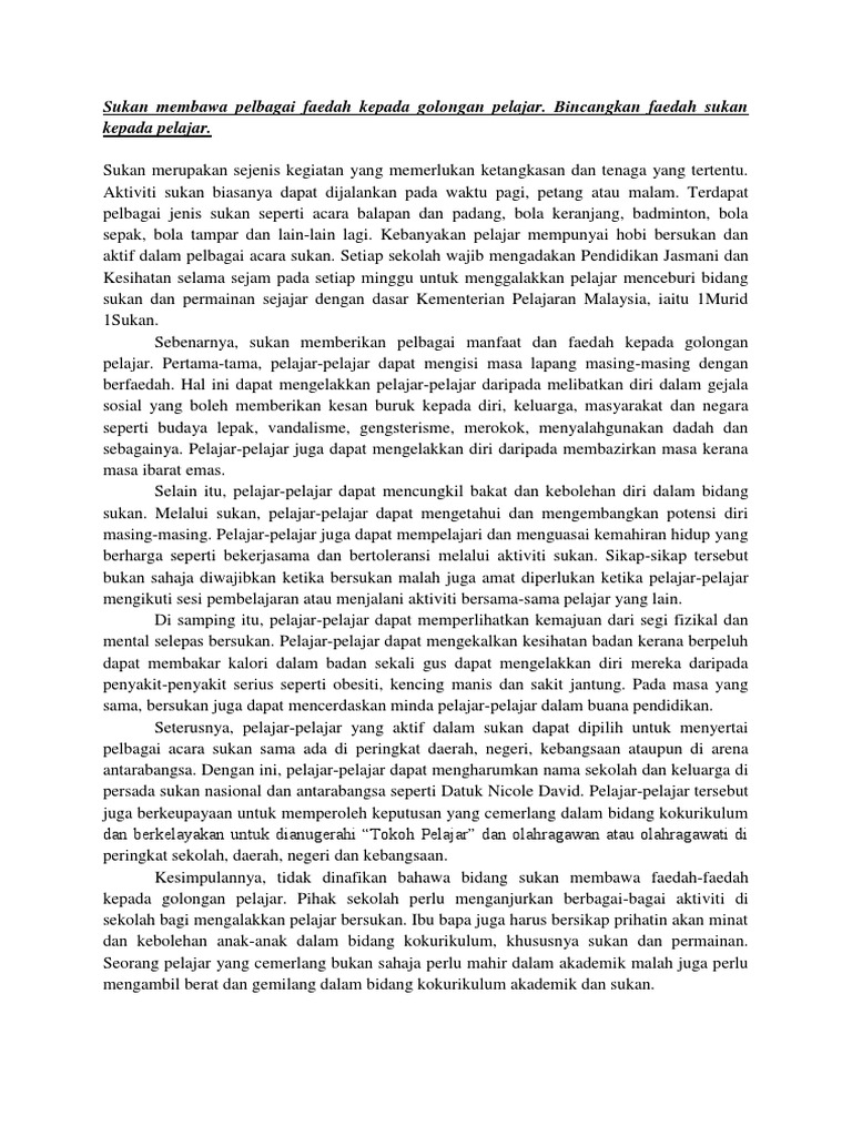 Karangan Kepentingan Sukan Kepada Negara Malaubuim