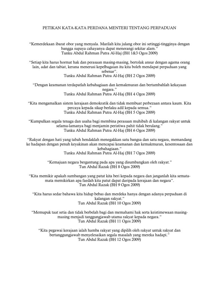 Kata Kata Tokoh Tunku Abdul Rahman Putra Al Haj 2