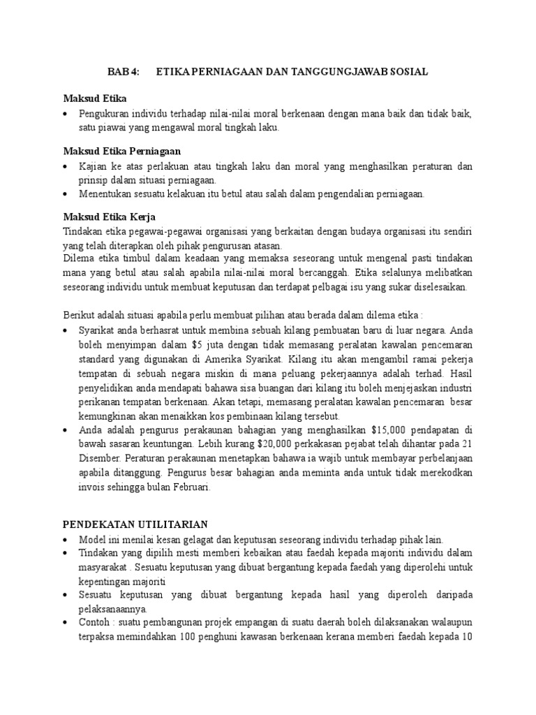 13 1 Etika Perniagaan Docx 13 1 Etika Perniagaan Etika Perniagaan Maksud Satu Set Nilai Dan Peraturan Yang Menerangkan Perlakuan Betul Atau Salah Course Hero