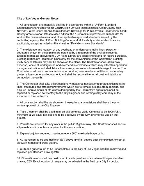 City Of Las Vegas General Notes 1 All Construction And Materials