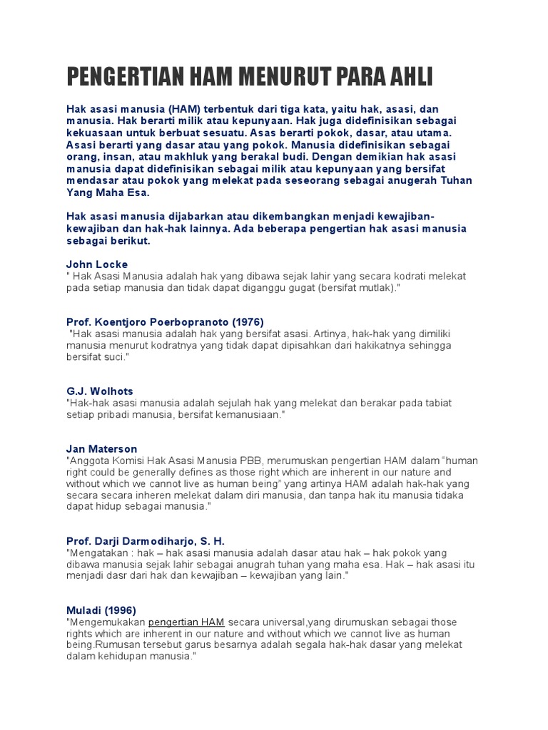 Pengertian Hak Asasi Manusia Menurut Para Ahli Pdf