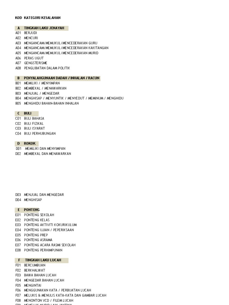 Kategori Kesalahan Sistem Salahlaku Disiplin Murid Ssdm