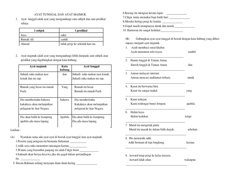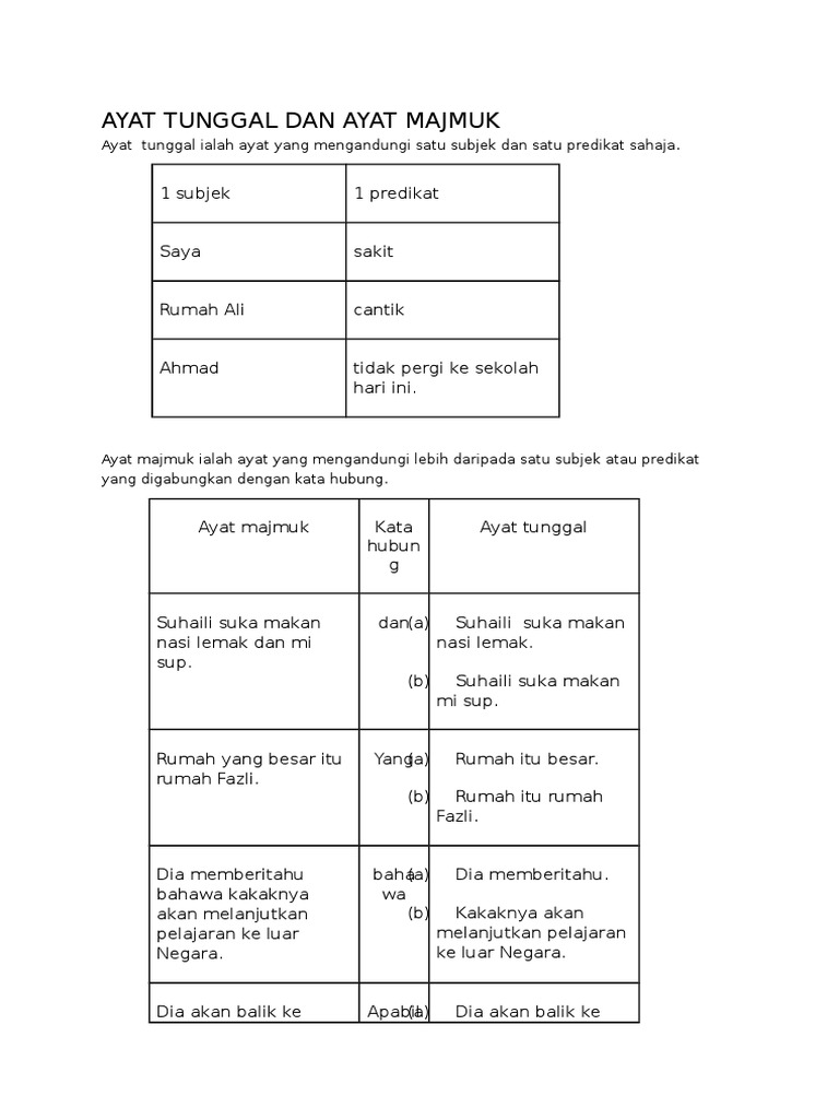 Ayat Tunggal Dan Ayat Majmuk Pdf