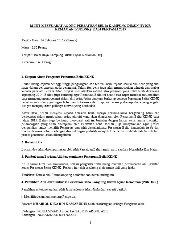 Pdf Contoh Minit Mesyuarat Untuk Persatuan Mith Quan Academia Edu