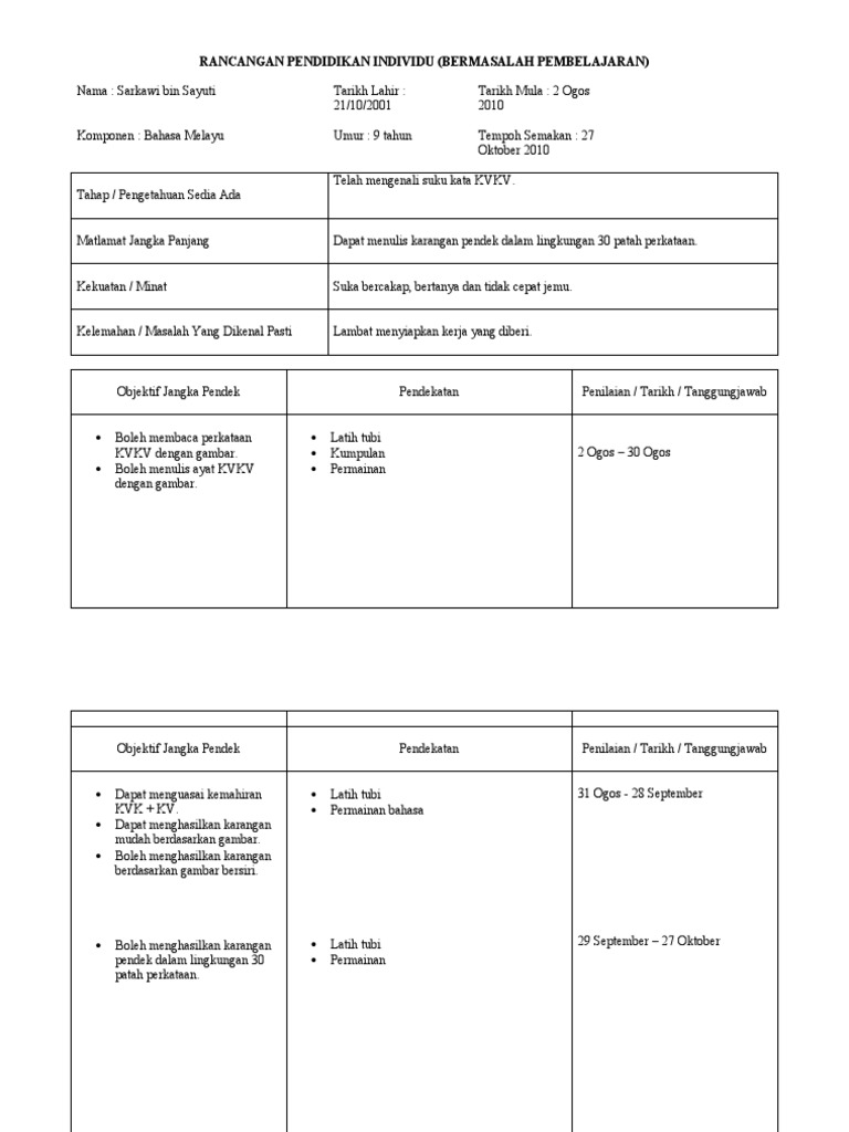 Rpi Borang Format Rancangan Pendidikan Individu Pdf