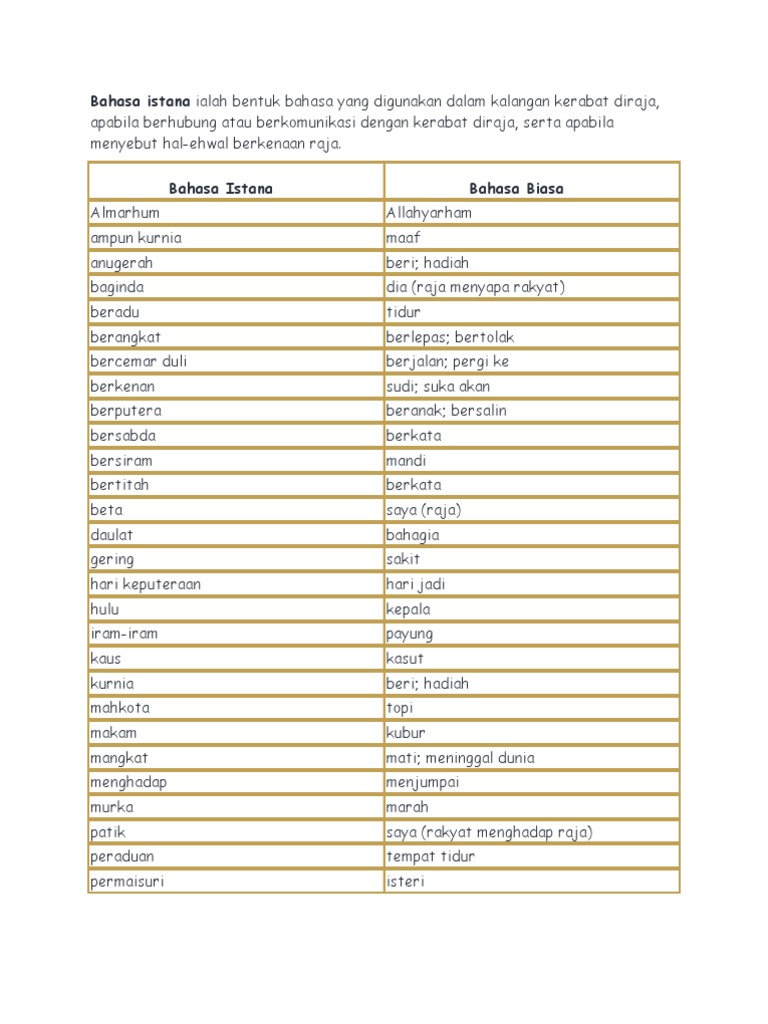 Kamus Bahasa Istana Dan Maksudnya