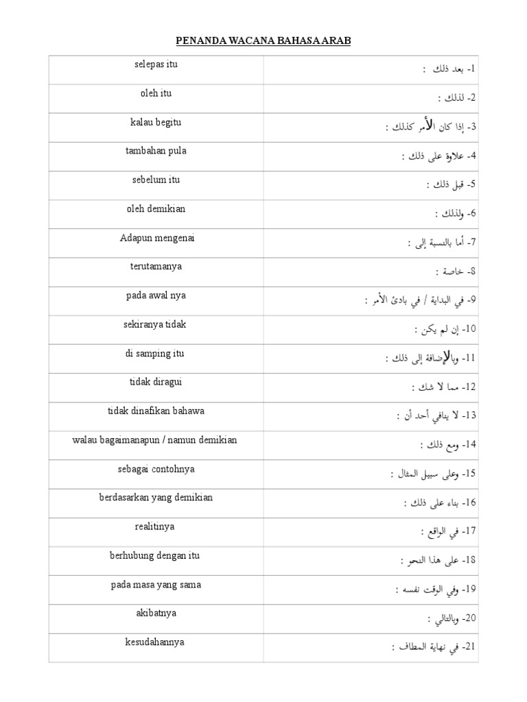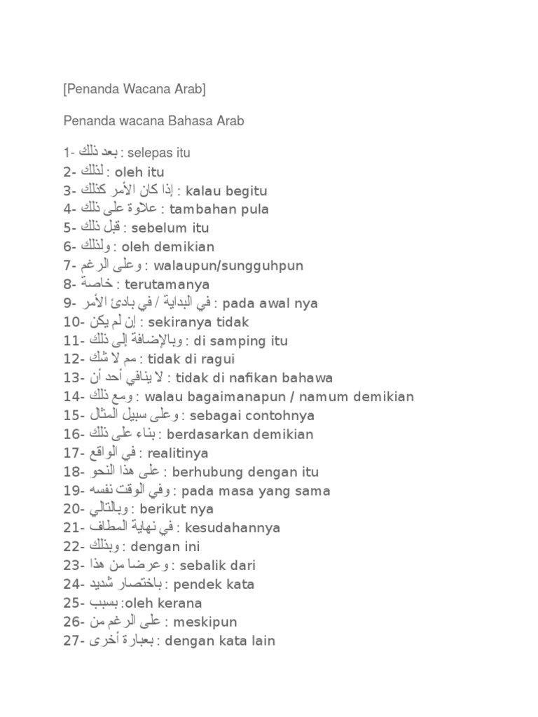 Penanda Wacana Bahasa Arab Nota Bahasa Arab Facebook