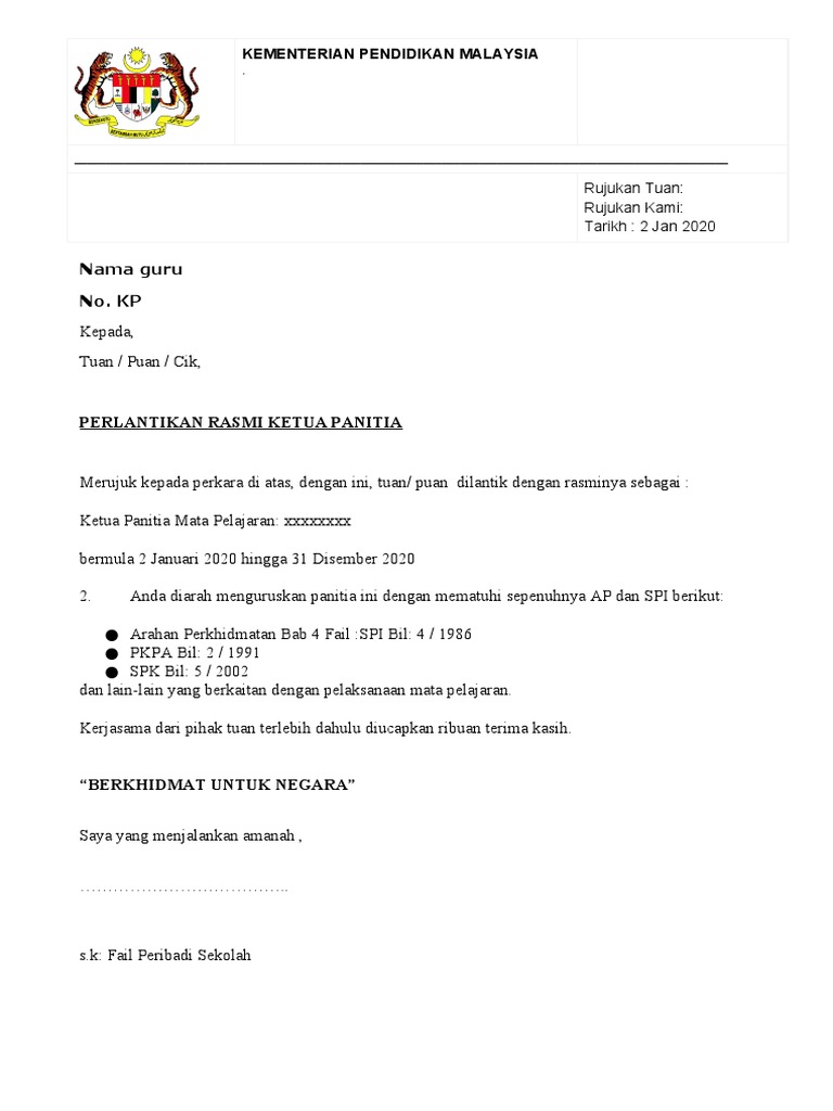 Muat Turun Contoh Surat Surat Perlantikan Jawantankuasa Di Sekolah