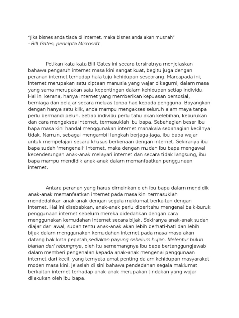 Karangan Spm Peranan Ibu Bapa Dalam Mendidik Anak Anak Memanfaatkan Internet Pdf