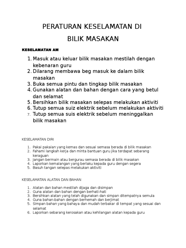 Keselamatan Bengkel Masakan Dan Jahitan Pdf