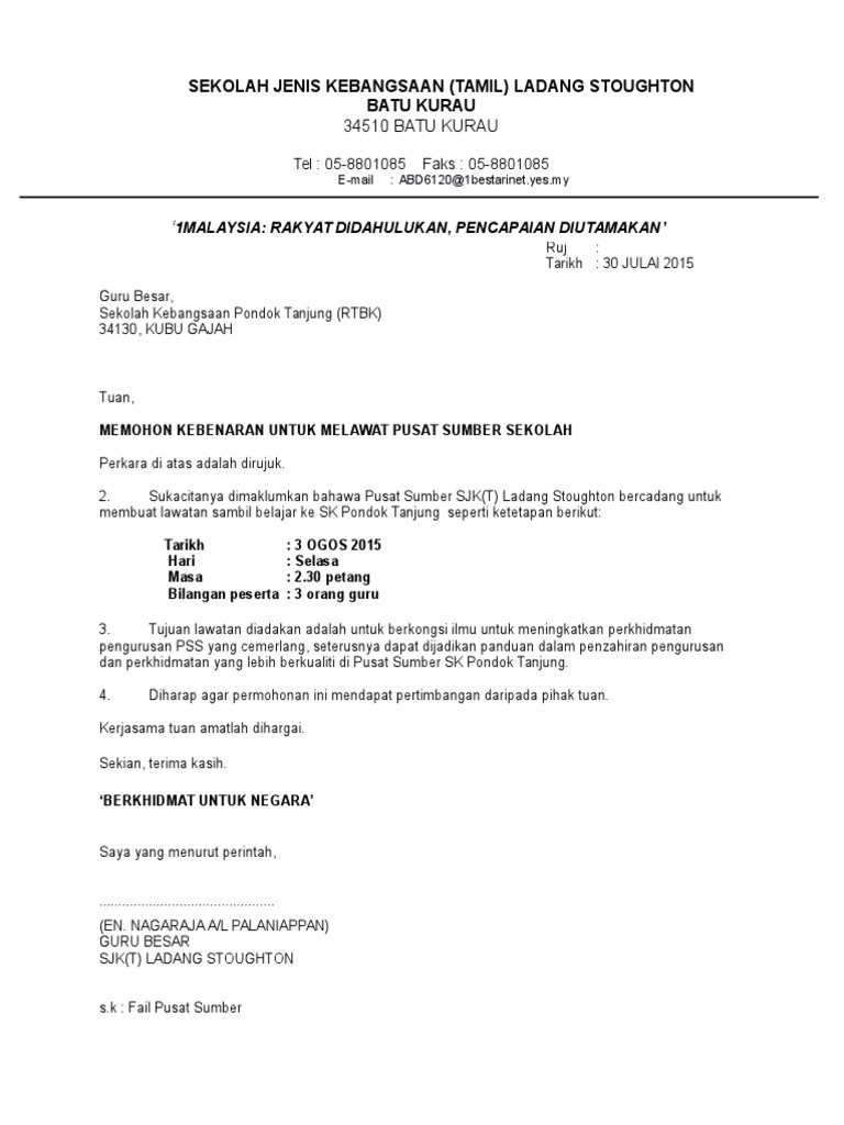 Contoh Surat Permohonan Surat Permohonan Lawatan Penanda Aras