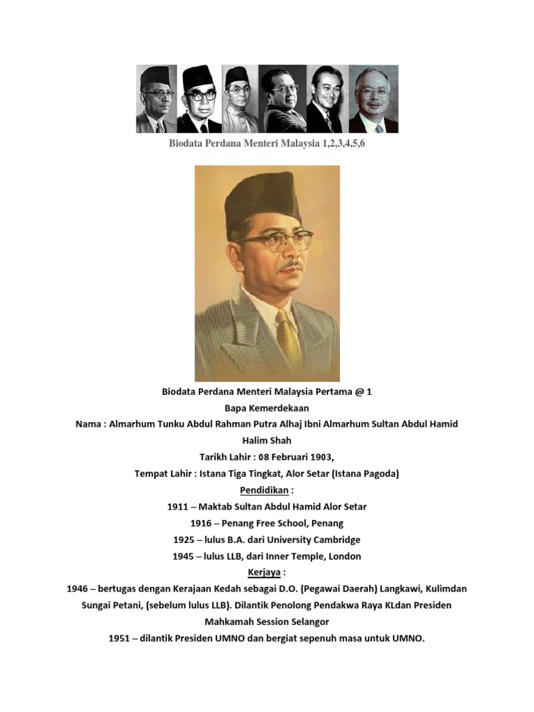 Biodata Perdana Menteri Malaysia 1 2 3 4 5 Dan 6