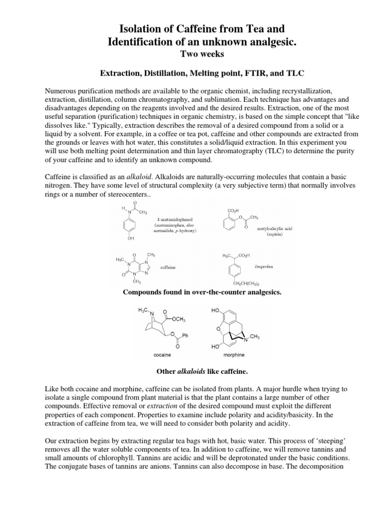 A Isolation Of Caffeine From Tea Thin Layer Chromatography Alkaloid