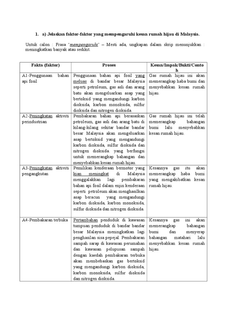 A Jelaskan Faktor Faktor Yang Mempengaruhi Kesan Rumah Hijau Di Malaysia