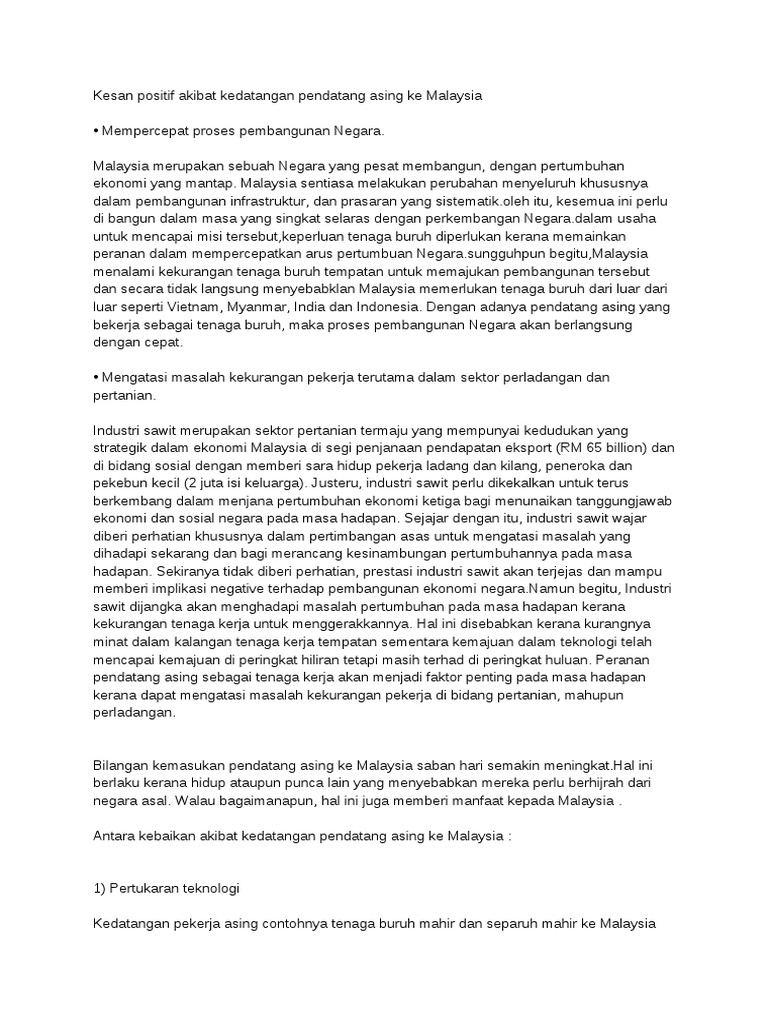 Doc Kesan Negatif Kebanjiran Warga Asing Di Malaysia Mohd Firdaus Academia Edu