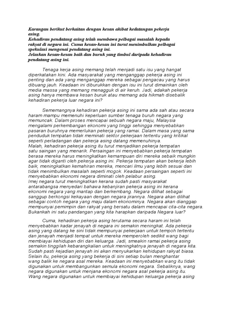 Karangan Sem 3 Kemasukan Buruh Asing