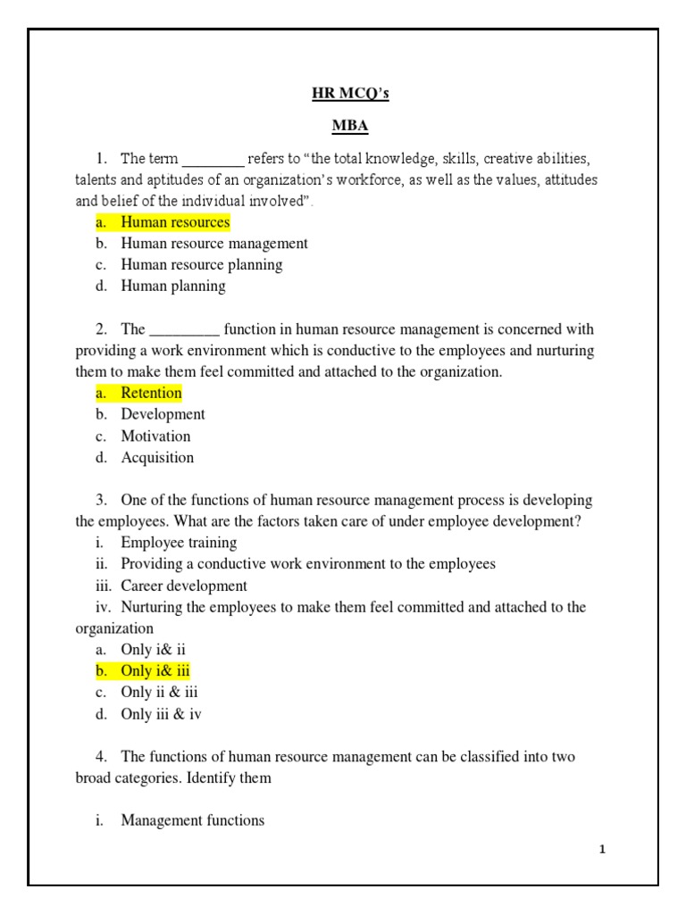 Mcq Hrm Multiple Choice Questions Mcq With Answers On Human Resource Management Studocu