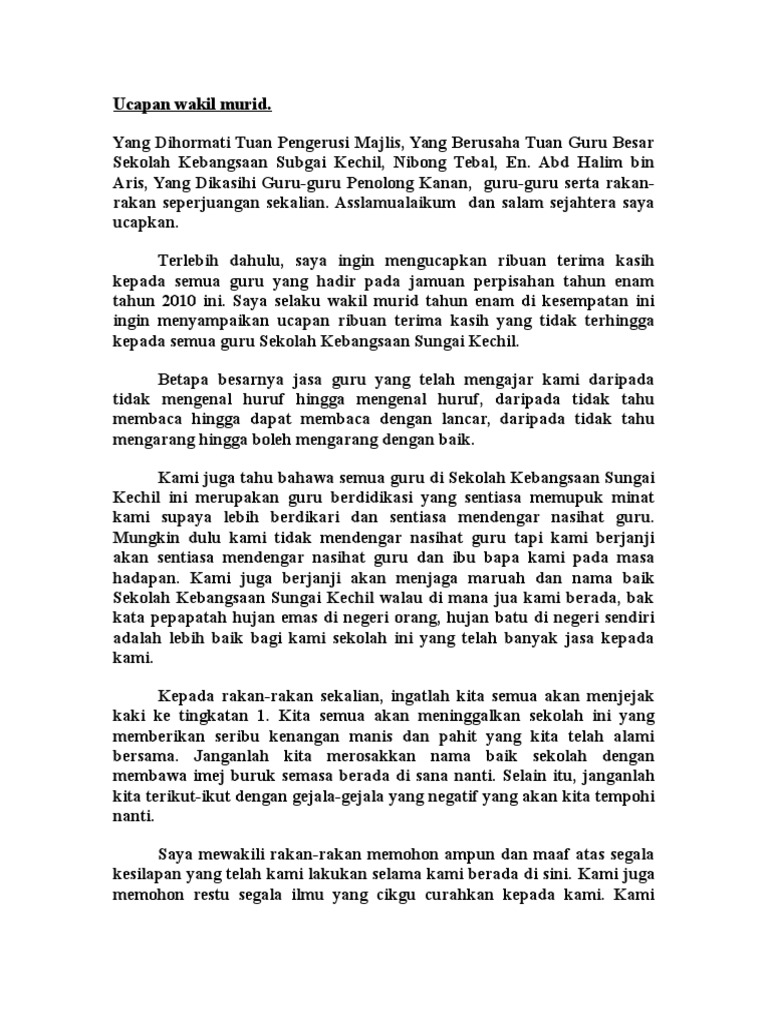 Teks Ucapan Pelajar Majlis Perpisahan Tahun 6 Pdf
