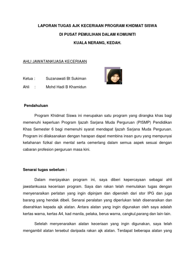 Laporan Tugas Ajk Keceriaan Program Khidmat Siswa