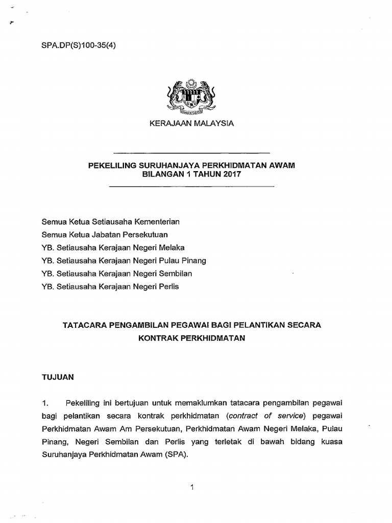 Pekeliling Suruhanjaya Perkhidmatan Awam Bilangan 1 Tahun 2017 Pdf