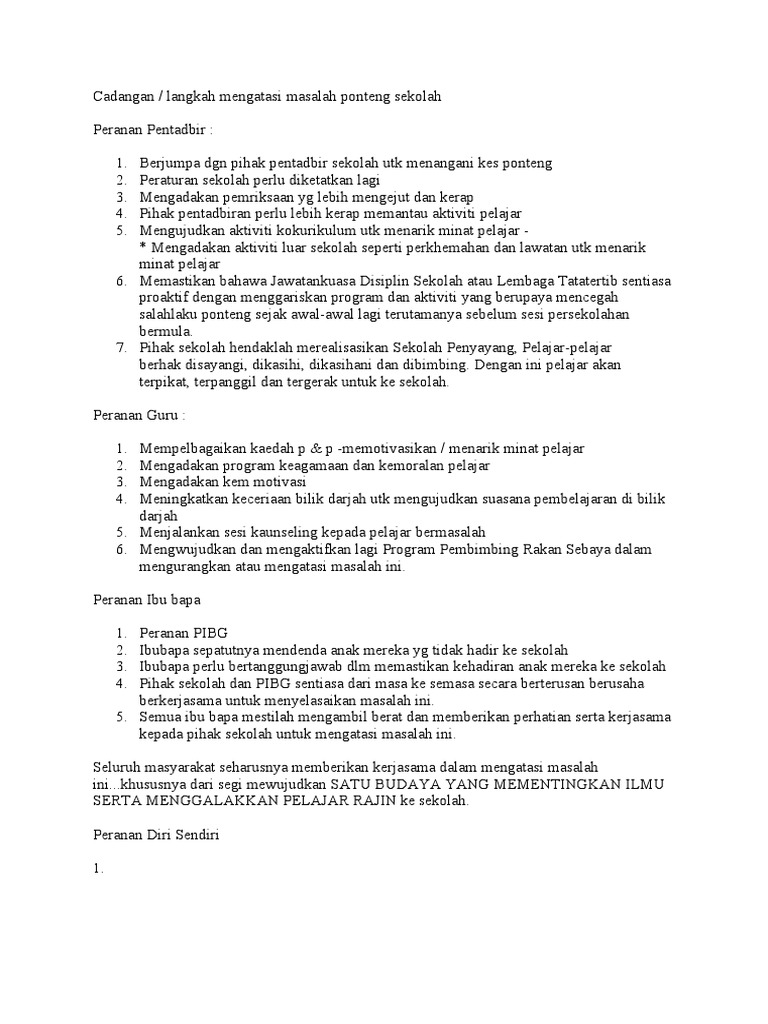 Cadangan Langkah Mengatasi Masalah Ponteng Sekolah