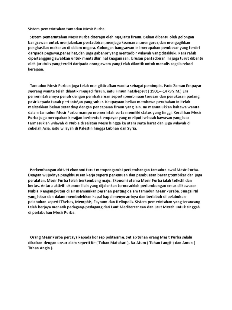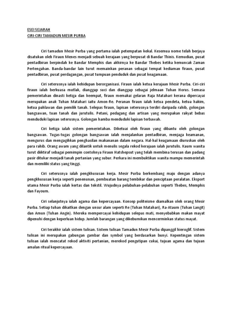 Ciri Ciri Tamadun Mesir Purba Esei