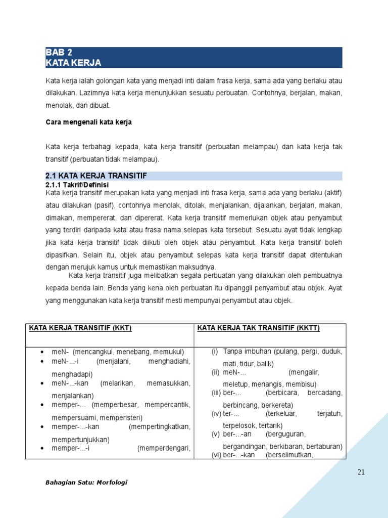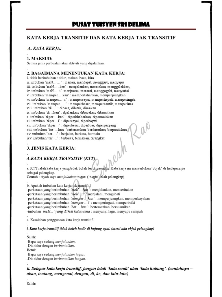 Kata Kerja Transitif Dan Tak Transitif Spm