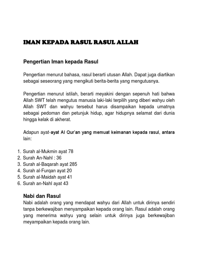 Iman Kepada Rasul Rasul Allah Swt